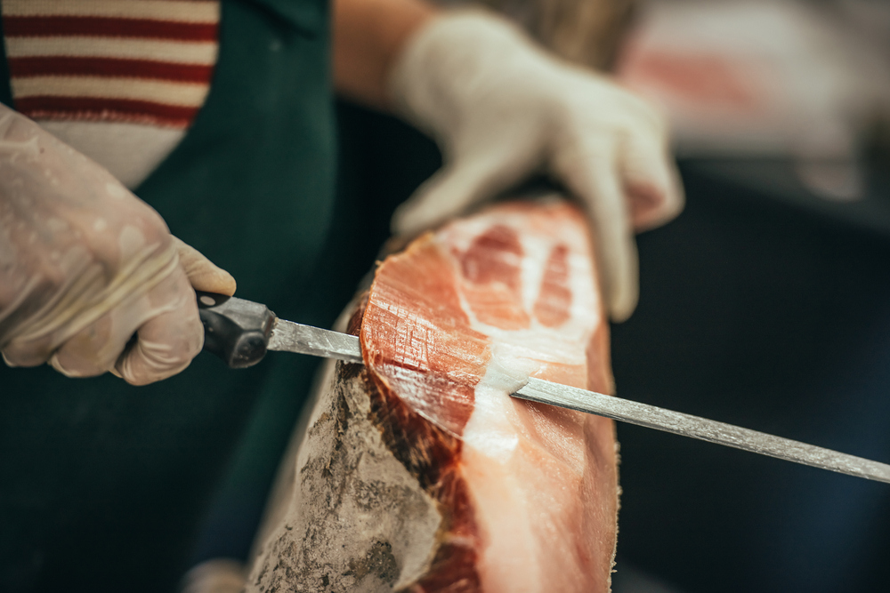 The meat is taken from a pig’s thigh, then cured three times. The final cure usually takes place for a minimum of one year and a maximum of three.